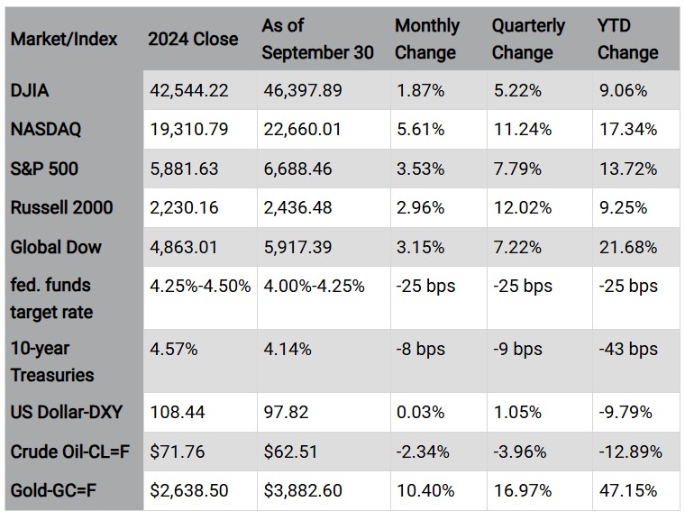 October begins the last quarter of the year and brings with it plenty of important, potentially market-moving, information. The jobs report for September is out at the beginning of the month. The employment sector has slowed considerably over the past several months. The first estimate of gross domestic product for the third quarter is out at the end of the month. The economy grew at about 3.3% in the second quarter. The Federal Open Market Committee meets at the end of the month for the second to last time in 2025. The Committee decided to reduce interest rates in September and indicated that there is a likelihood for at least one more rate reduction before the end of the year.
